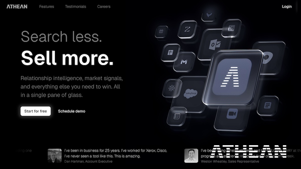 I developed the brand positioning, messaging framework, and go-to-market materials for Athean, a SaaS prospecting platform incubated at Bay Area security firm Verkada.